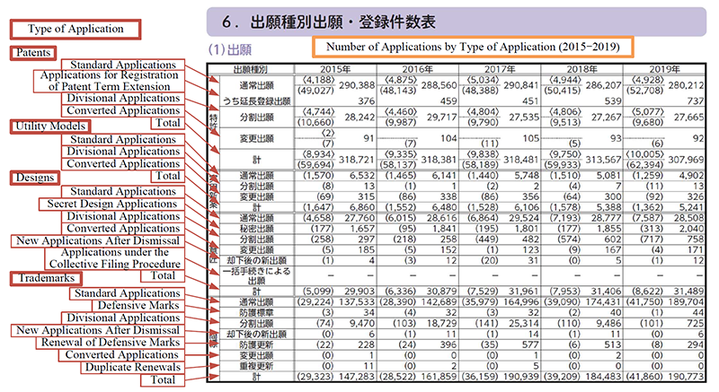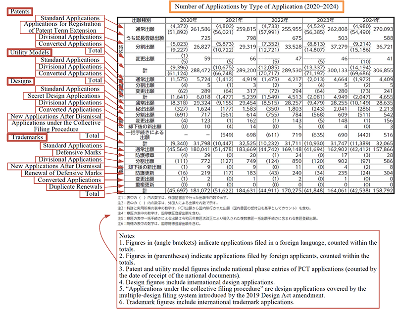 Since no official English version of the 2025 Annual Report has been released by the JPO, this article introduces selected tables with English headings and summarizes key data points to help readers understand the Japanese content.