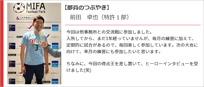 弊所以外の2チームも秋の知財業界のフットサル大会に参加された事務所です。