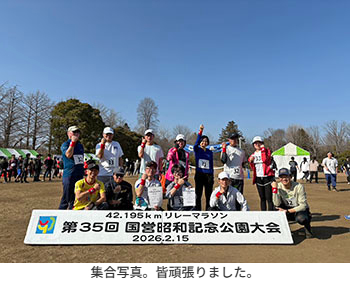 2026年2月15日(日)、国営昭和記念公園にて開催された「第35回 42.195kmリレーマラソン大会」に、太陽国際特許事務所ランニング部が参加しました。42.195kmを複数名のメンバーでタスキをつなぎながら走るリレーマラソン形式の競技です。