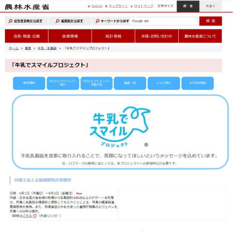 弊所の「牛乳でスマイルプロジェクト」の取り組みが、農林水産省様のホームページで紹介されました!