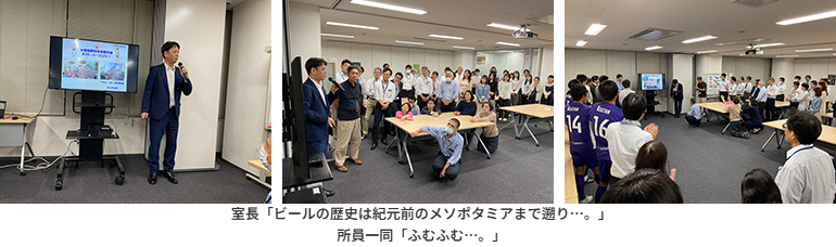 宴会の冒頭はアサヒビール株式会社知財戦略室 室長様より、ビールの歴史についてユーモアを交えて熱く語っていただきました。
