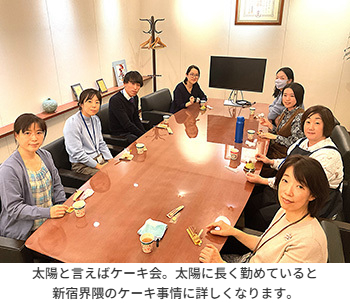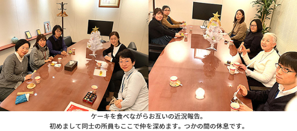 他部署の所員と情報交換をしつつ、ゆっくりケーキを堪能しながら英気を養うことができました。