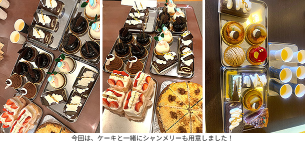 「王道の苺ショートケーキ」「チョコケーキが好き」「チーズケーキに目がない」「モンブランしか勝たん」「日本人は抹茶一択でしょう」「太らないケーキお願いします」など、所員のワガママ……いえ、リクエストに応えるべく、年々ケーキの種類は増え続け、今年は12か所のショップから18種類のケーキを取り揃えました。