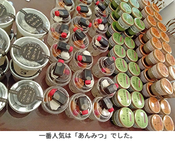 弊所オリジナルのネーミングですが、お椀に盛られた甘味を楽しむ一日です。定番のあんみつをはじめ、抹茶プリンやほうじ茶プリンなども登場し、どれも大好評でした。