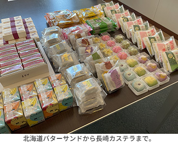 北海道から九州まで、各地の銘菓が一堂に会しました。年末年始に帰省できなかった所員にとっては、ちょっとした旅気分を味わえる時間になったようです。